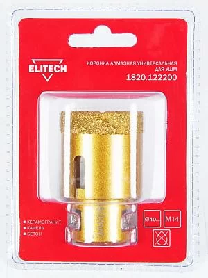 Коронка алмазная для УШМ Elitech 40хМ14 по керамограниту Коронка алмазная для УШМ Elitech 40хМ14 по керамограниту