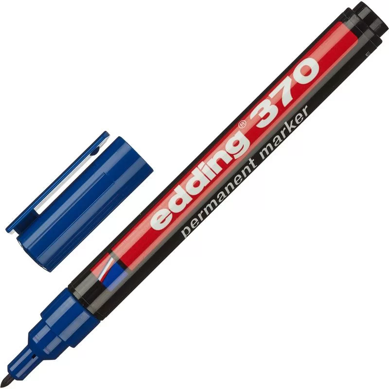 - Маркер перманентный Edding E-370/3 в прочном пластиком корпусе. Нестираемые светостойкие чернила на спиртовой основе. Идеально подходит для надписей на металле (в том числе и на грязном), картоне. Может использоваться для таких поверхностей, как дерево (в том числе влажное), стекло, пластик, керамика, кафель, различные пленки. Круглый наконечник маркера позволяет провести линию толщиной 1 мм. Страна производства — Германия. Цвет — синий.