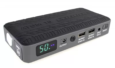 ATOM 10 предназначен для запуска двигателей мотоциклов, легковых машин, генераторов и прочих устройств для питания которых используется 12В аккумуляторы. Мощности устройства хватит для запуска бензиновых двигателей объёмом до 4л и для запуска дизельных двигателей до 2.5л. С помощью АТОМ 10 можно заряжать и питать мобильные телефоны и планшеты, ноутбуки, энергоёмкое автомобильное оборудование (компрессоры, автохолодильники и т.д.). Мощный LED-фонарь поможет осветить место работы в течение нескольких суток. Режим мигания фонаря "SOS" поможет подать сигнал бедствия или предупредит других участников движения в случае неисправности фар. Благодаря малому весу и компактным габаритам ATOM 10 можно использовать в походе, в командировке или на рыбалке.