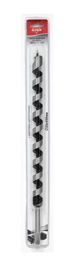 Сверло по дереву Elitech 25х450 мм винтовое с шестигранным хвостовикомСверло по дереву Elitech 25х450 мм винтовое с шестигранным хвостовиком