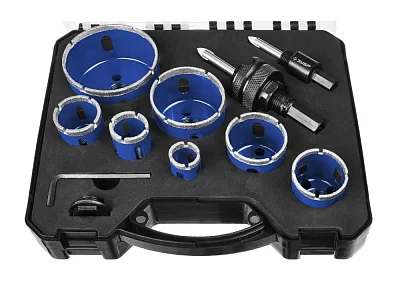 - Наборы алмазных и твердосплавных коронок